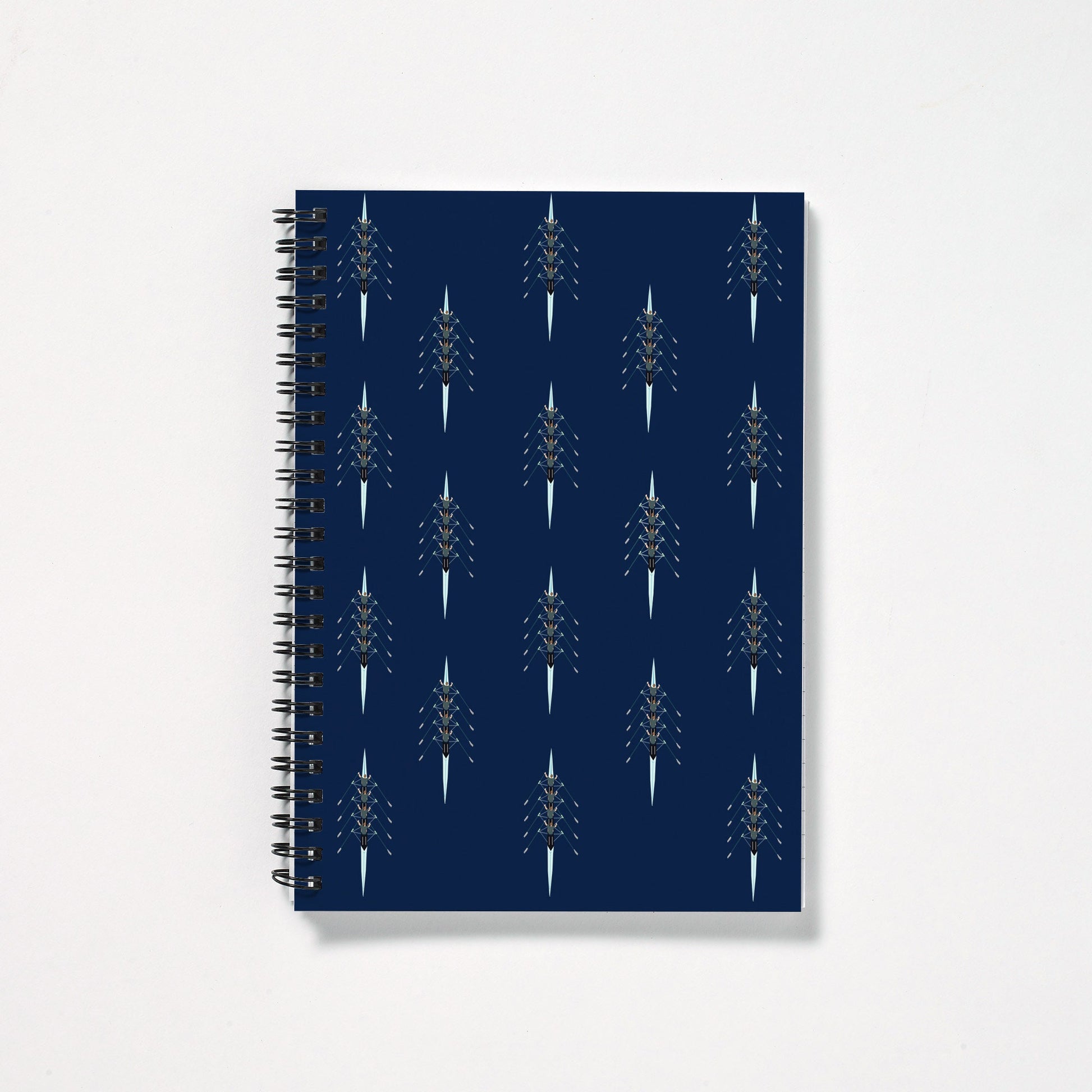 Embrace your passion for rowing with our Premium Wire Bound Notebook featuring a striking double scull rowing boat pattern on a navy background. This notebook is the perfect gift for any rowing enthusiast, whether it's for a child learning the sport, a coach organizing team strategies, or a dedicated rower tracking their training progress.