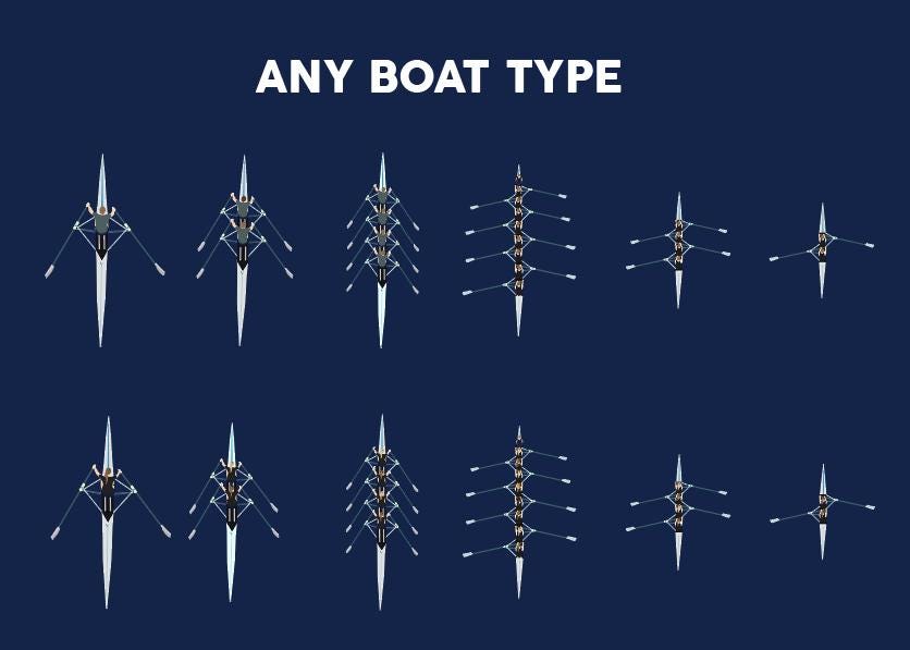 A birthday card for the rowing enthusiast in your life featuring a rowing boat on the front. Pick any boat type!